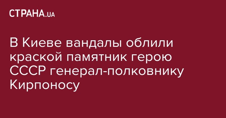 В Киеве вандалы осквернили памятник Герою Советского Союза генерал -полковнику Кирпоносу. Об этом сообщает пользователь Facebook Влад Багинский.