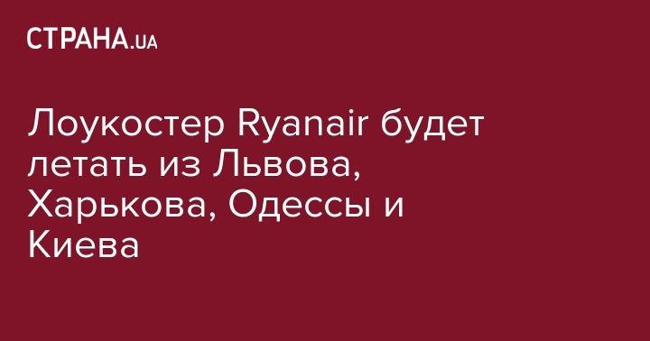 Лоукостер Ryanair будет летать из Львова, Харькова, Одессы и Киева