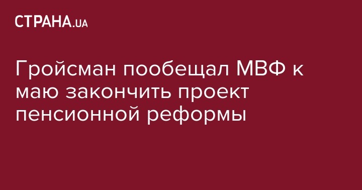 Премьер-министр Украины Владимир Гройсман заявил, что техническая работа над проектом пенсионной реформы в Украине должна быть завершена в мае текущего года. Заявление он сделал  в ходе встречи с главой миссии Международного валютного фонда (МВФ) по Украине Роном ван Роденом. Об этом сообщает пресс-служба Кабмина.