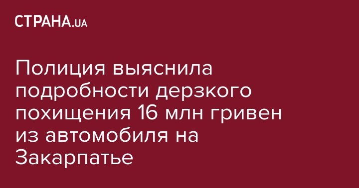 В Закарпатской полиции рассказали подробности разбоя, в результате которого банда похитила 16 миллионов гривен из автомобиля местного жителя. Сообщение размещено пресс-служба местной полиции.