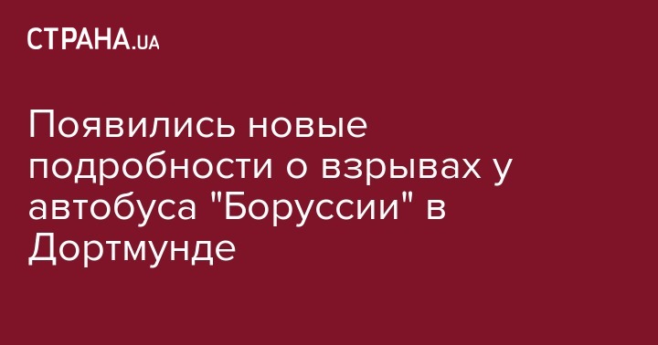 Как сообщала "Страна", перед матчем Лиги чемпионов в Дортмунде прогремел взрыв. Взрывное устройство сработало у автобуса команды, находившегося у отеля.