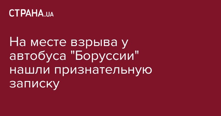 На месте взрывов в Дортмунде, возле автобуса футбольной команды "Боруссия", нашли записку, в которой неизвестный берет на себя ответственность за случившееся. Об этом сообщает DW.