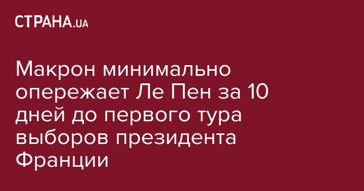 Согласно появившимся во Франции в четверг результатам очередного предвыборного опроса, за 10 дней до первого тура президентских выборов Эмманюэль Макрон по-прежнему остается лидером гонки с небольшим преимуществом перед Марин Ле Пен. Об этом пишет Интерфакс.