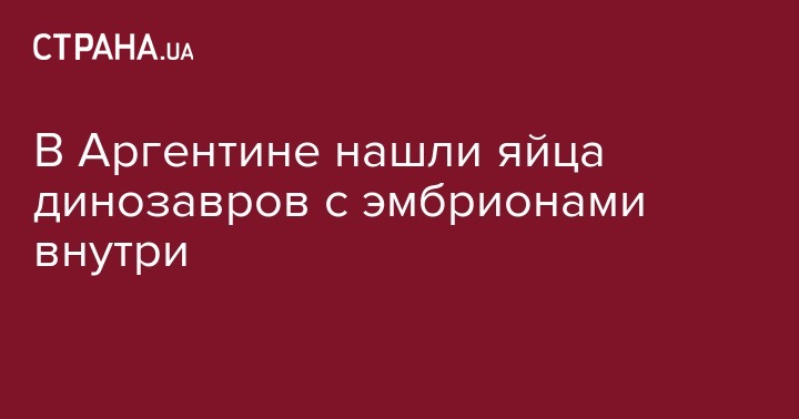 Яйца динозавров, которым не менее  70 миллионов лет, были обнаружены в провинции Неукен на юге Аргентины. Как передает ТАСС находка примечательна тем, что внутри яиц сохранились останки эмбрионов динозавров.