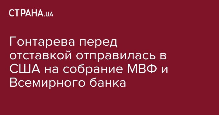 Глава Национального банка Валерия Гонтарева отбыла в Вашингтон (США) для участия в ежегодном весеннем собрании Международного валютного фонда и группы Всемирного банка.