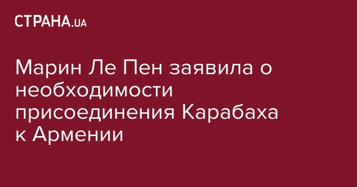 Кандидат в президенты Франции Марин Ле Пен заявила, что Нагорный Карабах следует присоединить к Армении для того, чтобы урегулировать существующий нагорно-карабахский конфликт. Об этом сообщает Nouvelles d'Armenie.