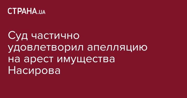 Апелляционный суд Киева частично удовлетворил жалобу на решение Соломенского районного суда столицы об аресте имущества отстраненного от должности главы Государственной фискальной службы (ГФС) Романа Насирова. Об этом сообщает "Интерфакс-Украина".