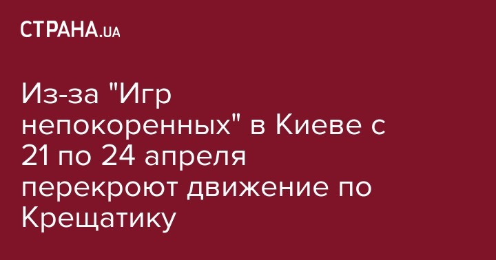 Движение всех видов транспорта на Крещатике и улице Трухановской в Киеве будет запрещено с 21 по 24 апреля. В этих локациях будут проводится Национальные спортивные состязания "Игры непокоренных".