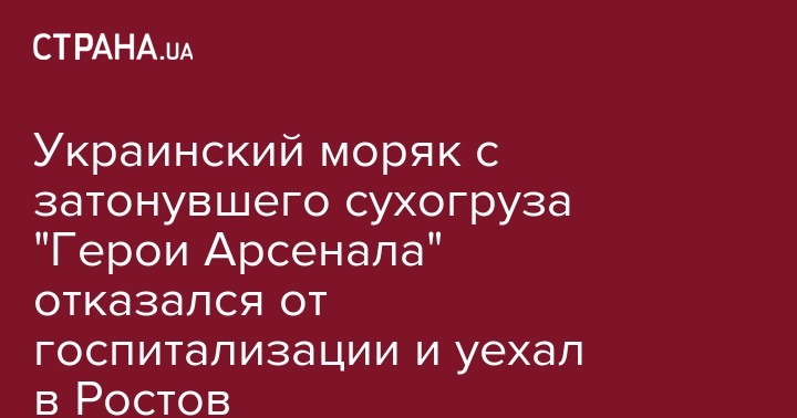 Украинский моряк с затонувшего сухогруза "Герои Арсенала" отказался от госпитализации и уехал в Ростов