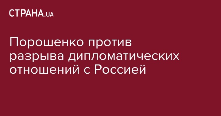 Президент Украины Петр Порошенко не поддерживает идею разрыва дипломатических отношений с Россией и считает, что усилия необходимо сосредоточить на выполнении Минских договоренностей. Об єтом пишет сегодня "Интерфакс-Украина".