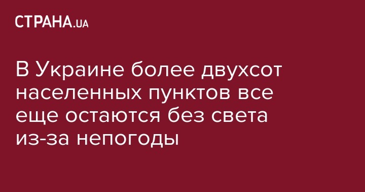В Украине более двухсот населенных пунктов все еще остаются без света из-за непогоды