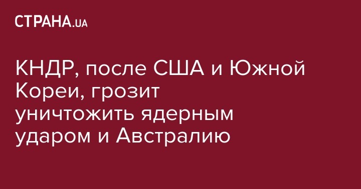 КНДР, после США и Южной Кореи, грозит уничтожить ядерным ударом и Австралию