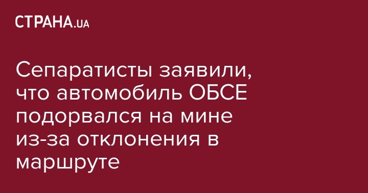 Сепаратисты т.н. "ЛНР" заявили, что автомобиль ОБСЕ, который подорвался сегодня на мине, "отклонился от маршрута". Напомним, в результате взрыва погиб один наблюдатель миссии ОБСЕ из США, трое получили ранения. Об этом сообщает "Радио Свобода"