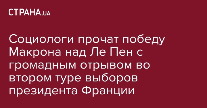 Социологи прочат победу Макрона над Ле Пен с громадным отрывом во втором туре выборов президента Франции