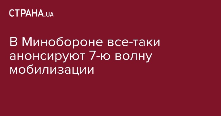 Очередная, седьмая, волна частичной мобилизации в Украине, скорее всего, будет проводиться. Как сообщил первый заместитель министра обороны Иван Руснак, это будет сделано для пополнения численности Вооруженных сил, передает "Интерфакс-Украина".