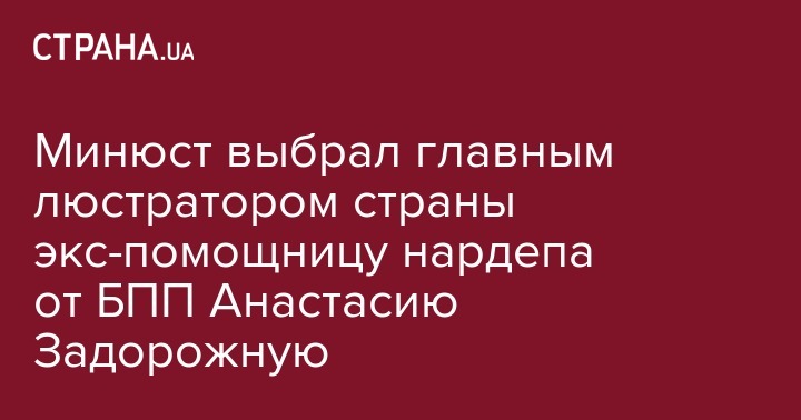 Согласно сообщению, Анастасия Задорожная является главным специалистом отдела правового обеспечения и научно аналитической работы департамента люстрации, а 17 марта Минюст назначил ее исполняющим обязанности директора департамента люстрации.
