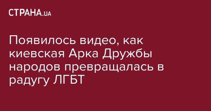 Появилось видео, как киевская Арка Дружбы народов превращалась в радугу ЛГБТ