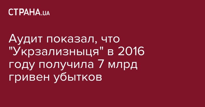 Крупная международная консалтинговая компания "Эрнст энд Янг Аудиторские услуги" (E&Y) завершила аудит консолидированной финансовой отчетности "Укрзализныци" за 2016 год и выяснила, что украинский ж\д перевозчик получил 7,3 млрд грн убытка по международным стандартам финансовой отчетности.