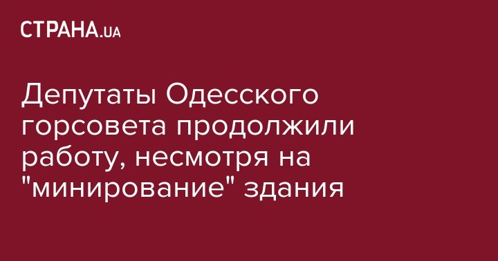 Сегодня, 26 апреля, на заседании сессии горсовета в Одессе депутаты проголосовали за продолжение работы, несмотря на сообщение анонима о минировании здания. Об этом сообщает "Интерфакс-Украина".