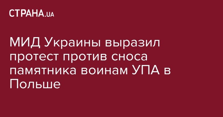 Министерство иностранных дел Украины выразило возмущение демонтажом украинского памятника воинам УПА в селе Грушовичи близ Перемышля польскими националистами. Заявление публикует пресс-служба МИД.