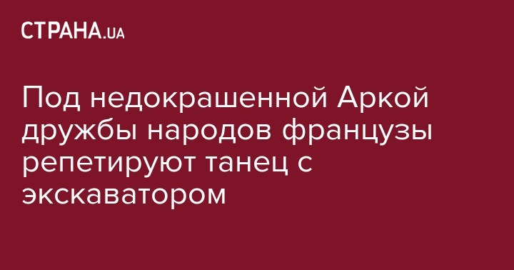 У Арки Дружбы народов, которую коммунальщики так и не закончили перекрашивать в цвета радуги из-за противодействия "Правого сектора", проводит репетицию "номера с экскаватором" французский балет.