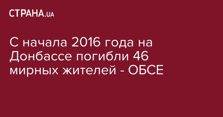 На Донбассе с начала 2016 года пострадало 141 гражданское лицо, из них 46 человек погибли. Об этом во время брифинга сообщил заместитель главы миссии ОБСЕ в Украине Александр Хуг, передает "УНН".