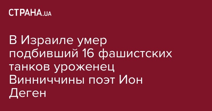 На 92-м году жизни ушел в мир иной уроженец нынешней Винницкой области поэт и писатель Ион Деген. Он умер в Израиле.