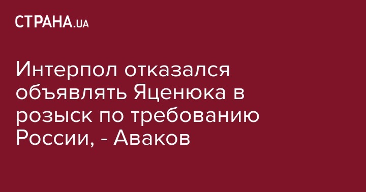 Интерпол отказал РФ в ходатайстве об объявлении в международный розыск с целью ареста и дальнейшей экстрадиции в Россию бывшего премьер-министра Украины Арсения Яценюка. Об этом на своей странице в Facebook сообщил министр внутренних дел Украины Арсен Аваков.