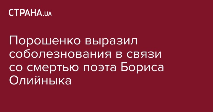 Порошенко выразил соболезнования в связи со смертью поэта Бориса Олийныка