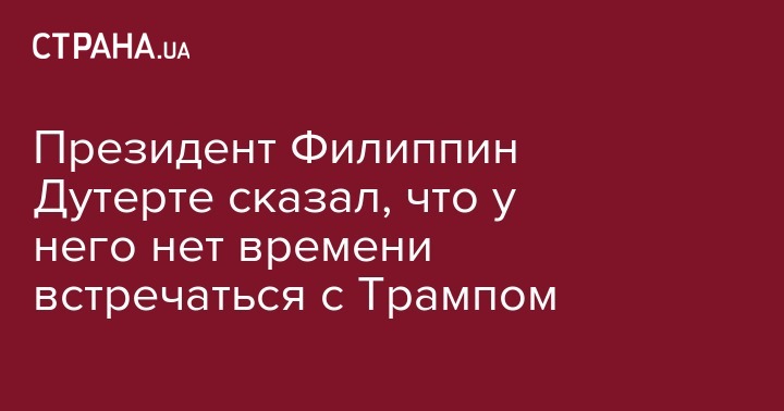 "Я слишком занят. И не могу ничего обещать. У меня запланированы встречи с лидерами России и Израиля", - отметил Родриго Дутерте.