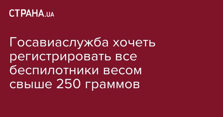 Государственная авиационная служба Украины предлагает ввести регистрацию всех беспилотных воздушных судов, массой свыше 250 граммов. Об этом говорится в Концепции регулирования направления беспилотных воздушных судов, текст которой обнародован на странице Госавиаслужбы в сети Facebook.