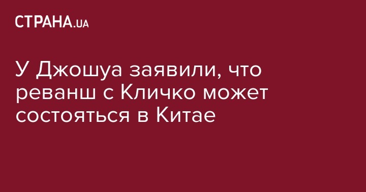 Промоутер британского боксера, чемпиона мира по версиям IBF, WBA и IBO в супертяжелом весе Энтони Джошуа, заявил, что в случае проведения боя-реванша с Владимиром Кличко, местом его проведения может быть Китай. Об этом сообщает Klitschko-brothers.com.