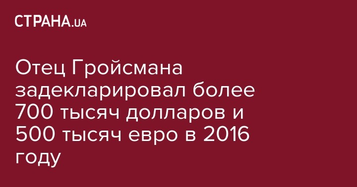 Отец Гройсмана задекларировал более 700 тысяч долларов и 500 тысяч евро в 2016 году