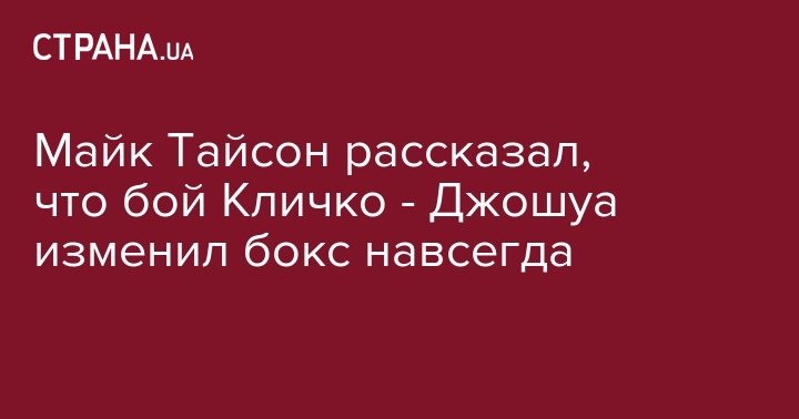 Бывший абсолютный чемпион мира в супертяжелом весе американец Майк Тайсон считает бой украинца Владимира Кличко против Энтони Джошуа крайне важным для бокса.
