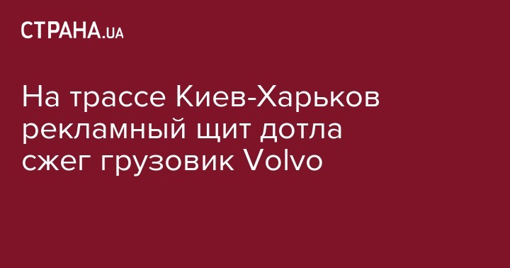 На трассе Киев-Харьков рекламный щит дотла сжег грузовик Volvo