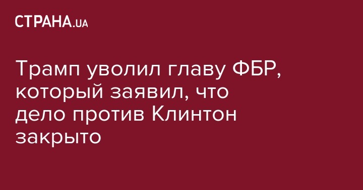 Трамп уволил главу ФБР, который заявил, что дело против Клинтон закрыто
