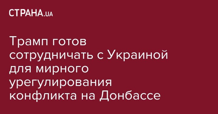 Президент США Дональд Трамп подтвердил готовность к сотрудничеству с Украиной для мирного урегулирования конфликта на Донбассе.
