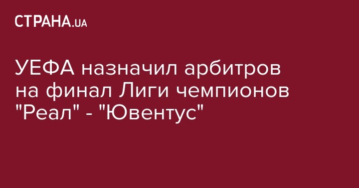УЕФА назначил арбитров на финал Лиги чемпионов "Реал" - "Ювентус"