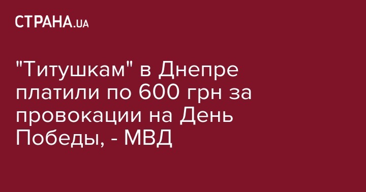 Так называемым титушкам в Днепре платили по 600 грн за участие в массовых беспорядках на День Победы. Об этом рассказал замначальника Главного управления Нацполиции в Днепропетровской области Олег Грозь. Об этом сообщает пресс-служба МВД.
