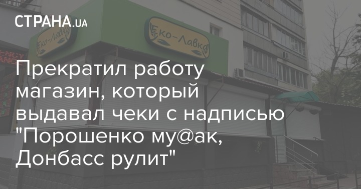 "Эко-лавка" на улице Соломенской в Киеве прекратила работу после визита советника министра внутренних дел Ильи Кивы и главы "Братства" Дмитрия Корчинского, которые обнаружили в ней чеки с надписью "Порошенко мудак, Донбасс рулит".