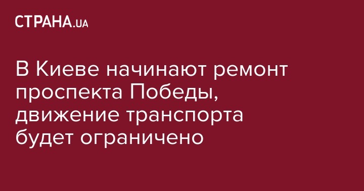 С 16 мая в Киеве будет ограничено движение транспорта по проспекту Победы по причине проведения ремонтных работ. Об этом сообщает пресс-служба КГГА.