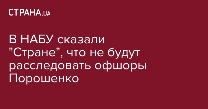 В Национальном антикоррупционном бюро Украины не будут расследовать офшорные схемы Петра Порошенко.