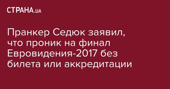 Оголивший свою задницу на сцене Евровидения-2017 пранкер-журналист Виталий Седюк, заявил что попал в киевский Международный Выставочный Центр, где проходил финал международного конкурса, без билета и аккредитации.