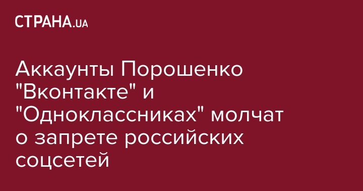 Официальные аккаунты Петра Порошенко "Вконтакте" и "Одноклассниках" не опубликовали новость про указ президента о запрете российских соцсетей.