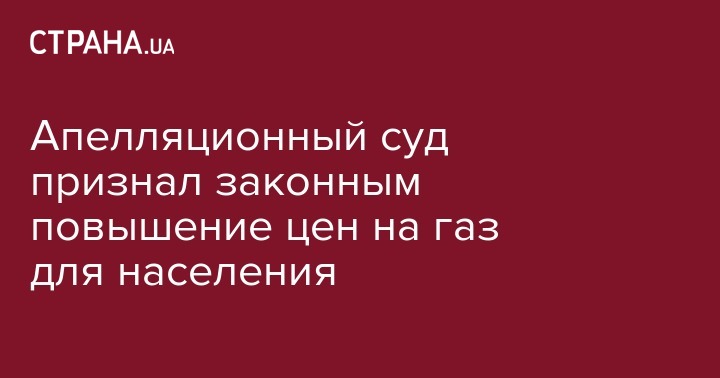 Киевский апелляционный административный суд отменил решение Окружного административного суда Киева от 3 ноября 2015 года и признал законным решение Национальной комиссии госрегулирования энергетики и коммунальных услуг (НКРЭКУ) №583 от 3 марта 2015 года, которым комиссия увеличила цены на природный газ для населения до 3,6 гривен/куб. м (в рамках социальной нормы 200 куб.м/месяц) и 7,2 гривен/куб. м, начиная с 1 апреля того же года. Об этом говорится в постановлении суда от 21 марта, обнародованном в Едином государственном реестре судебных решений.
