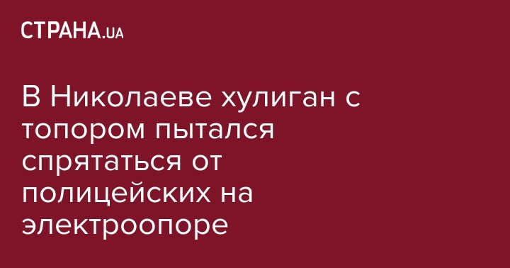 В Николаеве хулиган с топором пытался спрятаться от полицейских на электроопоре