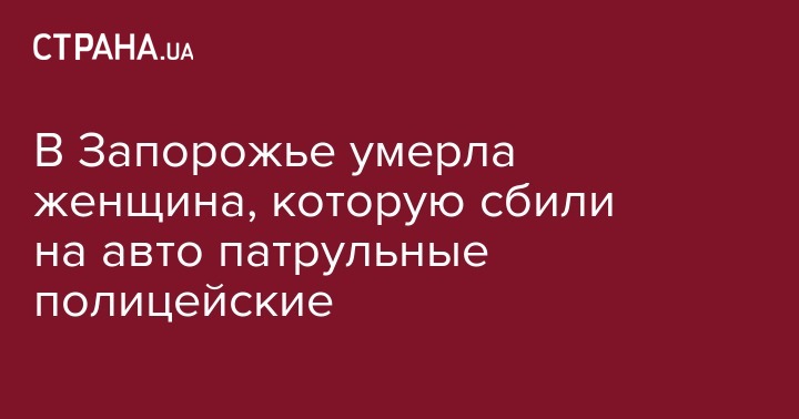 В Запорожье умерла женщина, которую 7 мая сбил автомобиль патрульной полиции. Об этом сообщает УНН со ссылкой на заместителя главного врача по хирургической помощи 5-й городской больницы Олега Великого.