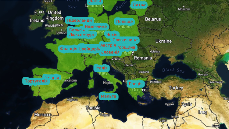 Карта стран Европы с безвизовым для украинцев режимом, фото: travel.europewb.org.ua/karta-yevropy