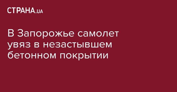 В Запорожье самолет увяз в незастывшем бетонном покрытии