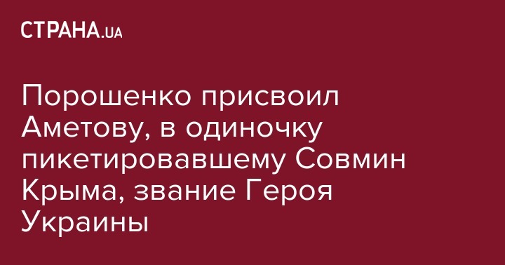 Порошенко присвоил Аметову, в одиночку пикетировавшему Совмин Крыма, звание Героя Украины